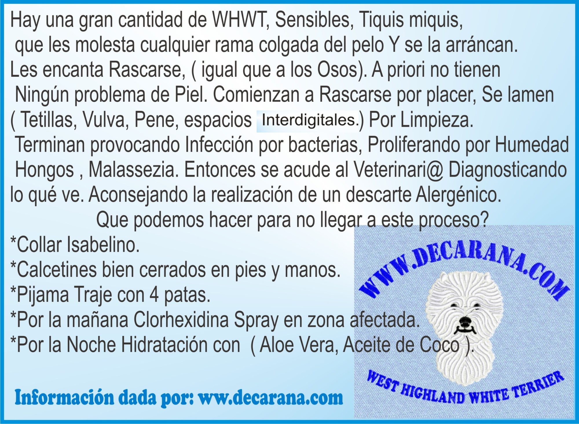 No soy Veterinaria, Soy Seleccionadora de la Raza West Highland White Terrier. Infórmese y consulte con su Veterinari@